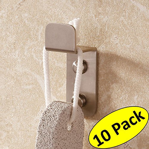 KES Bathroom Single Coat and Robe Hook SUS 304 Stainless Steel Wall Mount 10 Pack, Brushed Finish, A21460-2-P10