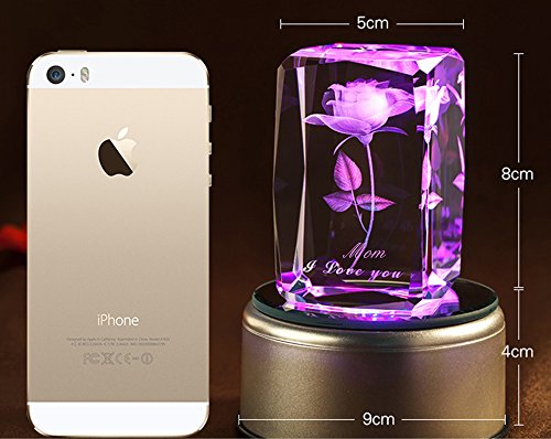 Feature : MP3 music base: With a 2G memory card MP3 Music Base allows you to download any music by yourself. Built-in lithium battery, can be recharged using / A never fade 3D rose engraved,forever love. Under the rose,it can sculptures with your text. / K9 Crystal: Pure and luxury. Advanced laser inside carving tech insures the amazing 3D effects / Automatically rotating music box base with LED colorful lights: Gradient red, yellow, blue and green lights shine in the precious crystal rose when the music is flowing in the air. / Perfect romantic gift: For Wedding Anniversary, Valentine¡¯s Day, Christmas, and Birthday. Let Crystal Rose witness your true love.