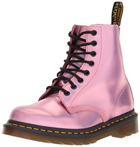 -. Feature : Made with Iced Metallic, a smooth high shine leather with a pearlescent finish / Constructed on the iconic, durable Dr. Martens air-cushioned sole / Good slip resistance and abrasion / This is a Goodyear-welted product / Retains classic Doc's DNA, like grooved sides, yellow stitching and scripted heel-loop