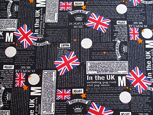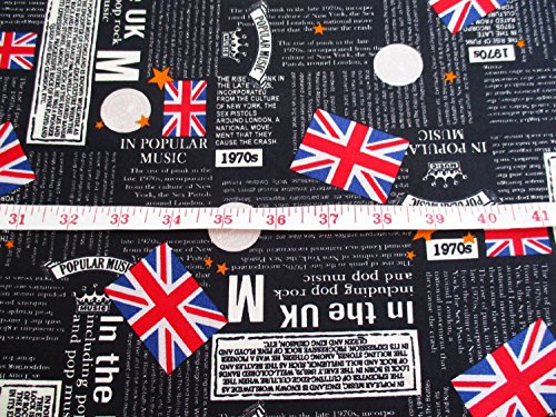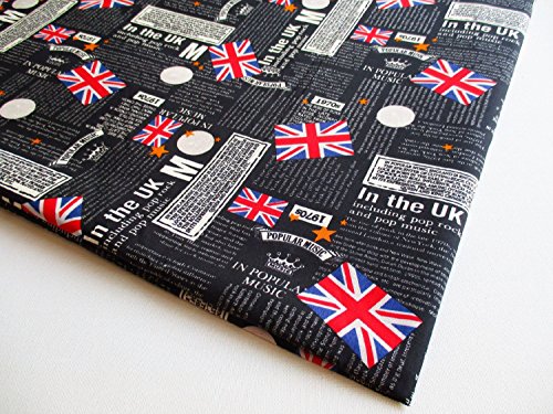 British Newspaper UK Blue Red Flag Union Jack on Black 36 by 36-Inch Wide (1 Yard) (CT506)