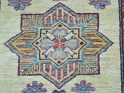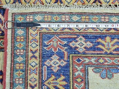 Product DescriptionDesignKazakSize2'9 x 7'10Age(Yrs)NewField ColorIvoryBorder ColorDenim BlueAccent Color(s)Sky Blue, Gold, Salmon, Forest Green, BlackWeaveHand KnottedFoundationCottonPile0