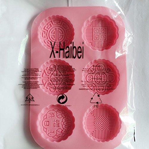 X-Haibei Round Mooncake Chocolate Lotion Bars Soap Making Supplies Silicone Mold 6-Cavity