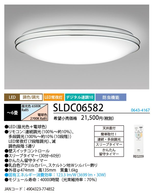●リモコン:連続調光(100%~約10%)、多段調光(100%~約10%(10段階))、LED常夜灯(7段階調光)、減、調色段階5通り