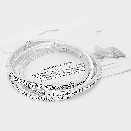 Beautiful 3 Piece Layered Engraved Serenity Prayer Stretch Bracelet with Gift Box