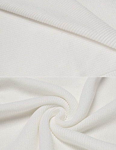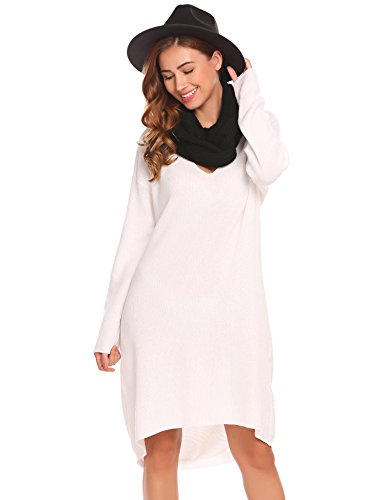 Elesol Women Sweater Dress Sexy Deep V Neck Long Sleeve High Low Hem White/S
