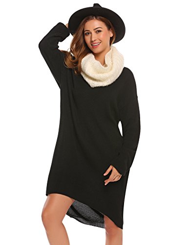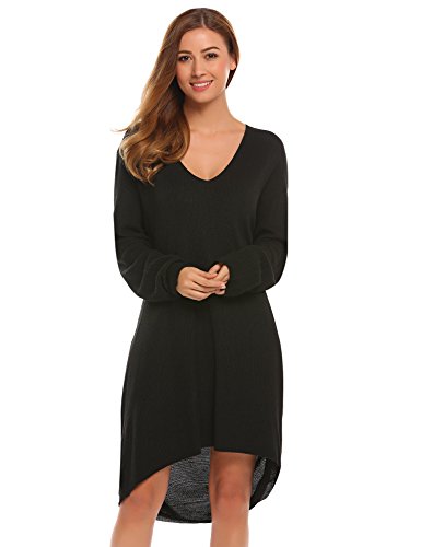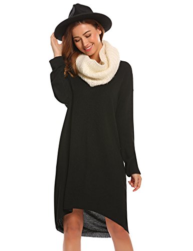 Elesol Women Irregular Hem Sweater Dress High Low Tunic Sweater Dress Black/L