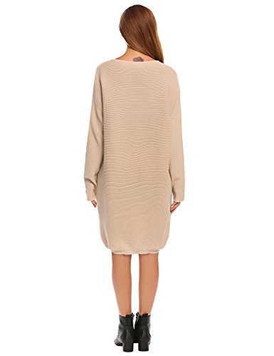 Elesol Women Fashion Waffle Knit Dress Oversized Batwing Sweater Dress Camel/L