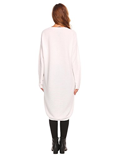 Elesol Women Winter Thick Sweater Dress Casual Knee Length Pullover Tunic Sweater White/L