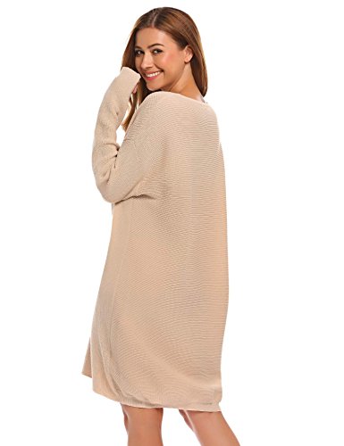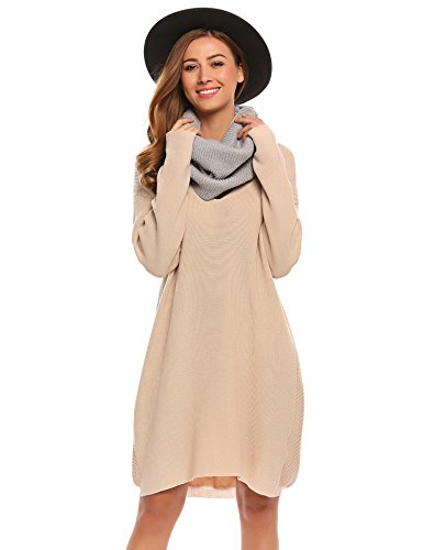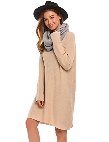 Elesol Women Warm Jersey Knit Dress Long Sleeve Pullover Sweater Dress Camel/M