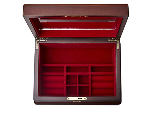- BEAUTIFUL RED VELVET INSIDE: Once you open the jewelry box, you are greeted by its warm red interior space where you can keep all your wonderful pieces organized. From earrings, rings and sterling silver pendants to necklaces and bracelets, you can keep everything neatly organized and displayed. Plus, this box features a mirror on the top half that always comes handy when you try out your precious possessions.