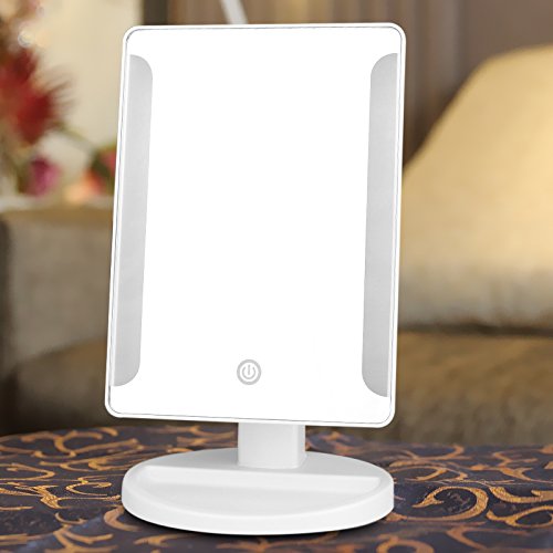 - TOUCH SCREEN DIMMABLE MAKEUP MIRROR: Just press your finger on top of small circle and hold on for several seconds, you can dim the lights.