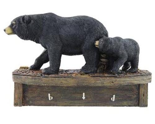 Black Bear Family Cub Keyholder Rack Hook Sculpture, Wall Mounted, 8-inch