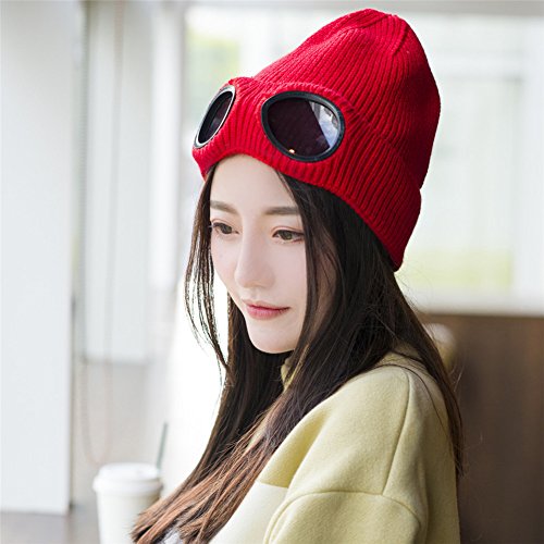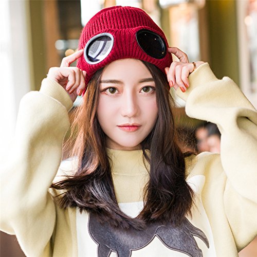 (Thiningstars)/Accessories/Cold Weather Accessories/DIRECT FROM USA/Womens Winter Warm Beanie Wool Knitted Ski Hat With Windproof Glasses