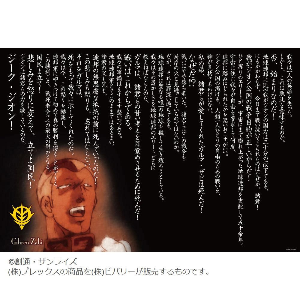 機動戦士ガンダムのジグソーパズルです。亡き弟・ガルマの追悼大会にて、ジオンの軍勢を前にギレン・ザビ総帥が行った演説が書かれています。