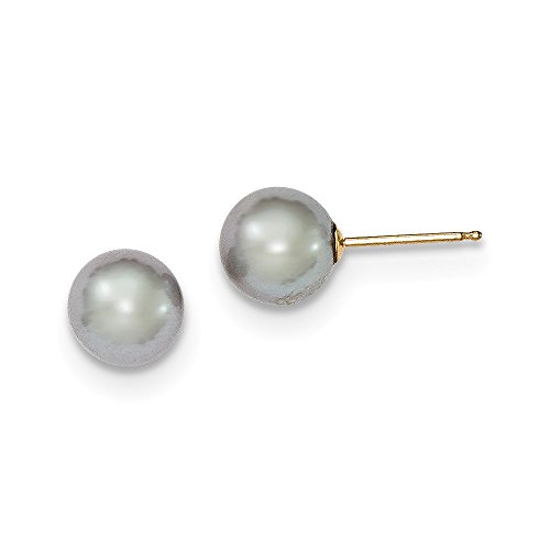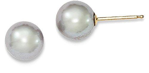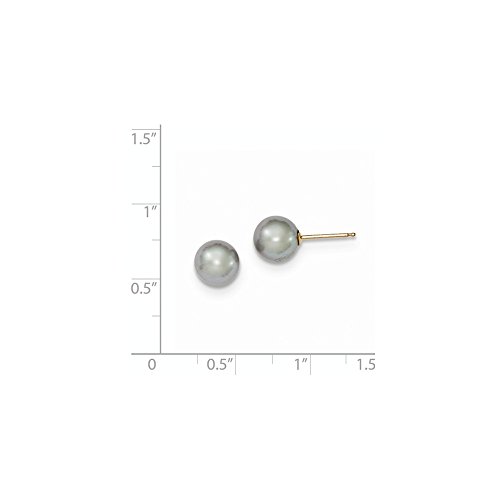 ICECARATS DESIGNER JEWELRY 14K YELLOW GOLD 8MM GREY ROUND FRESHWATER CULTURED PEARL STUD BALL BUTTON STUD EARRINGS