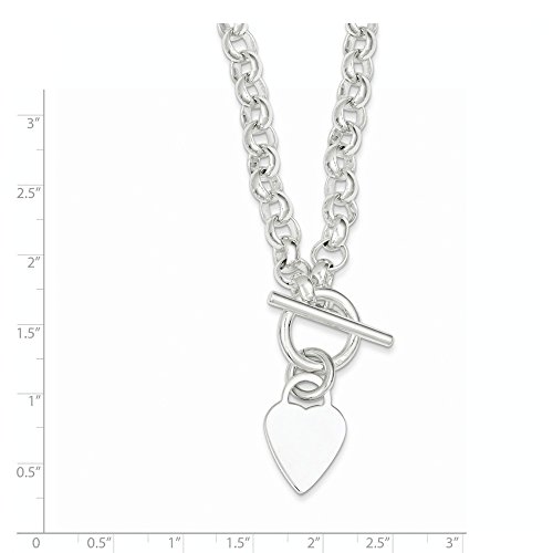 Solid 925 Sterling Silver Engraveable Heart Disc on Fancy Link Toggle Necklace Chain 18" (7mm)