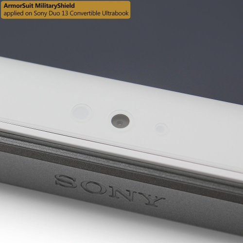 -. Feature : ArmorSuit MilitaryShield Kit for Sony VAIO Duo 13 Convertible Ultrabook includes our MilitaryShield piece(s), Installation Solution, Squeegee, Lint-free cloth, and Installation Instructions. / Ultra HD Clear and amazingly thin, perfectly matches the contours of your device. Easy application with flexible material is designed for maximum full coverage on curved corners and edges on your device. / Created from scratch-proof, ultra-tough, optically clear, military-grade, yellow-resistant material and is custom fit for each particular gadget and device with full body and screen protection. / MilitaryShield has self-healing technology, which helps eliminate minor scratches on the film all by itself. Significantly reduces dust, oil and fingerP.R.Int smudges. / ArmorSuit stands behind the quality of our MilitaryShield products to ensure 100% Satisfaction to all of our customers. All ArmorSuit MilitaryShield products are backed by Lifetime Replacement Warranty. Made in USA.