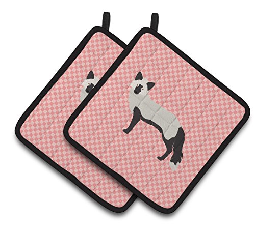 Caroline's Treasures BB7871PTHD Silver Fox Pink Check Decorated Pot Holder, 7.5" x 7.5", Multicolor