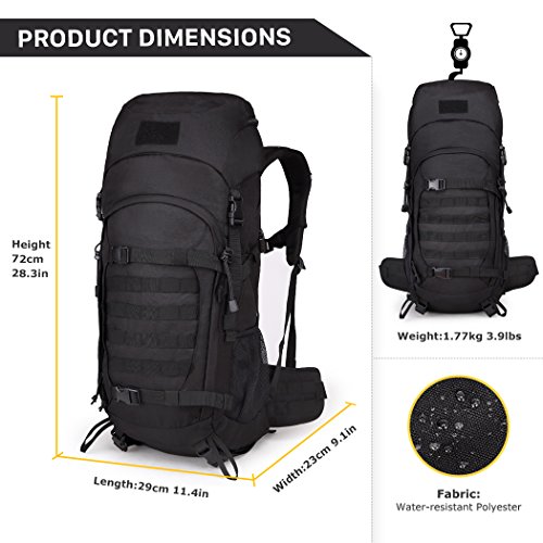 MATERIAL- This 50L tactical backpack is made of Water-resistant 600D polyester. If you want smaller tactical backpack (35L/40L), you can please check this product B01KYYJ0QG/ B01F88FD8W at our store.