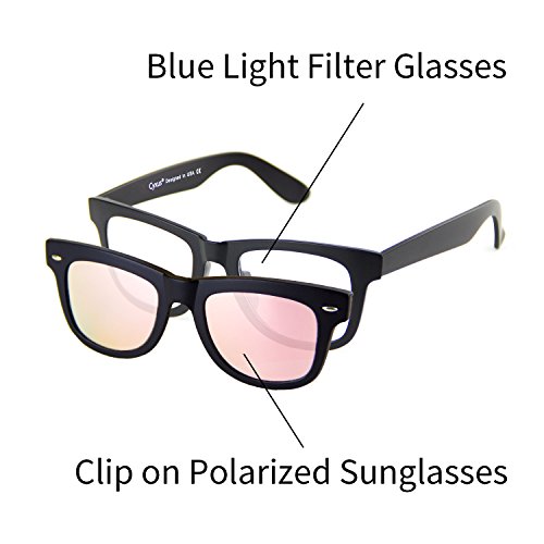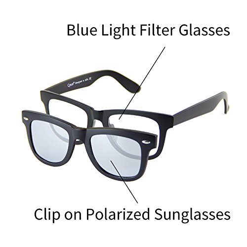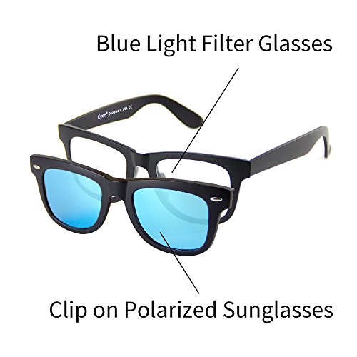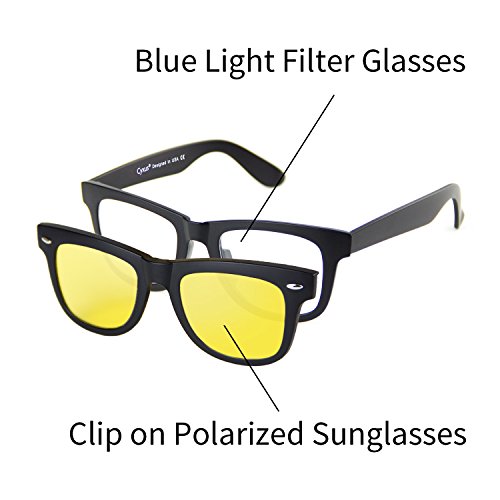 ITEM INCLUDES - One blue light filter glasses and one clip-on sunglasses which can be freely installed.Frame is made of ultra light TR90.
