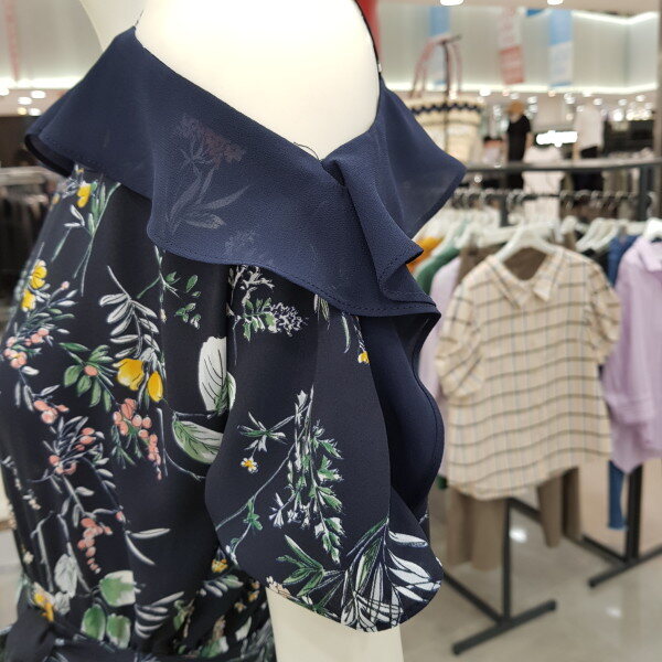 하늘거리는 쉬폰소재의 오픈숄더형이라시원해보임