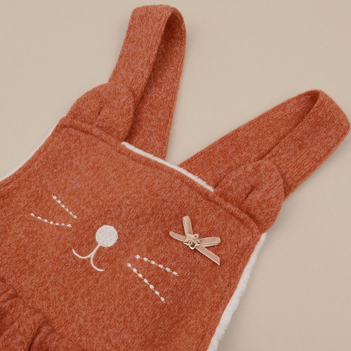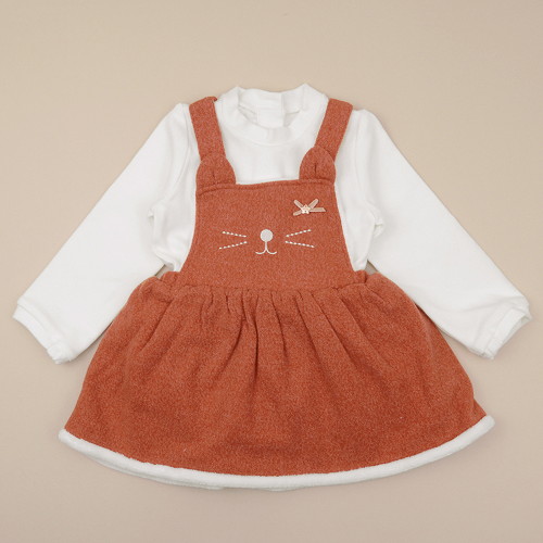 고양이 자수가 사랑스러운 멜빵 원피스의 안감은 소프트한 3mm극세사로 되어있어 보온성이 좋습니다.