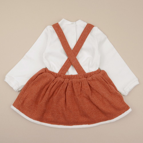 -스트레치가 좋은 기모후라이스 티셔츠와 화사한 컬러감의 멜빵 원피스가 세트 입니다.