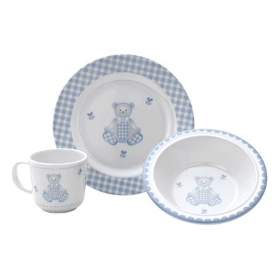 -. Title : Gingham Bear 3-Piece Dinnerware Set