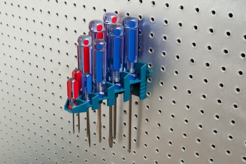 - Screwdriver holder can be used on pegboard or solid wall surfaces