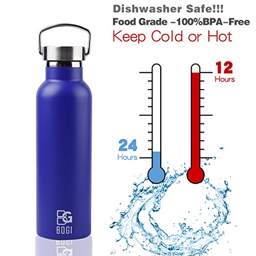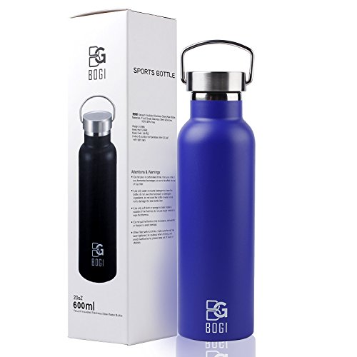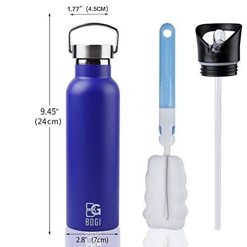 BOGI 20oz Double Wall Vacuum Insulated Stainless Steel Water Bottle-Scratch Resistance&Eco-Friendly for Outdoor Sports Yoga Camping,Straw Flip Cap+Cleaning Brush-1Year Warranty