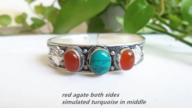 Inlaid:red agate , black agate, simulated turquoise
