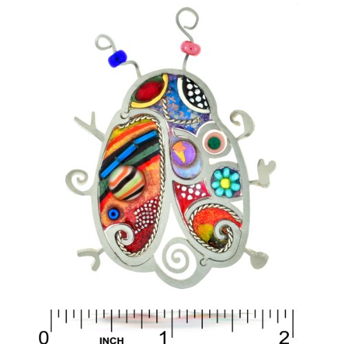 This bright ladybug pin is hand painted in a rainbow of bright, warm colors