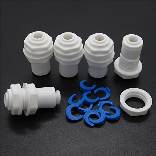 Lemoy 1/4 inch plastic bulkhead fitting tubing quick onnectors pipe fittings for Reverse Osmosis Drinking Water Filter System (Pack of 5)