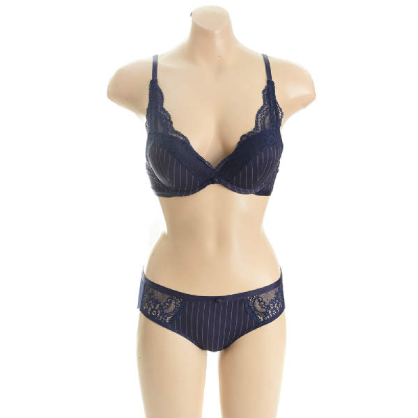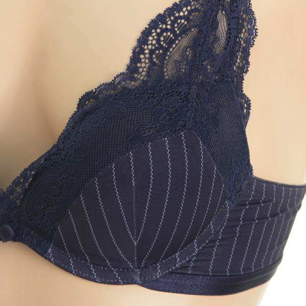 - NB컬러의 핀스트라이프 나염에 컵위로 올라오는 레이스가 포근하게 감싸주며, 시크한 감성연출.