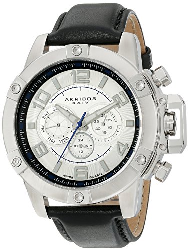 -. Title : Akribos XXIV Men's AK605WT Conqueror Multi-Function Stainless Steel Swiss Quartz Leather Strap Watch