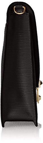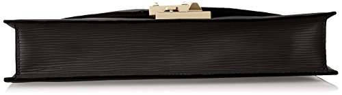 - Feature : One interior zip and two slip pockets / Large clutch in woodgrain textured leather featuring envelope flap with gold-tone lock and hardware / Removable chain shoulder strap with leather shoulder
