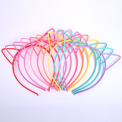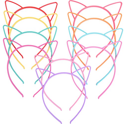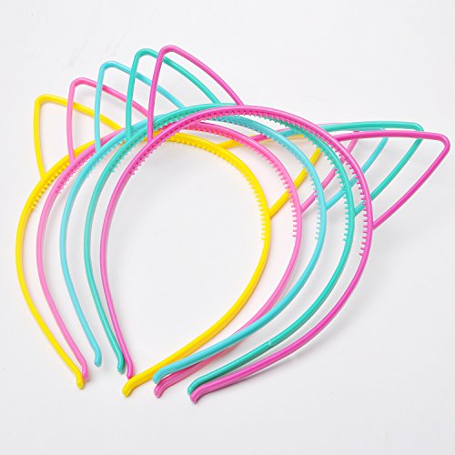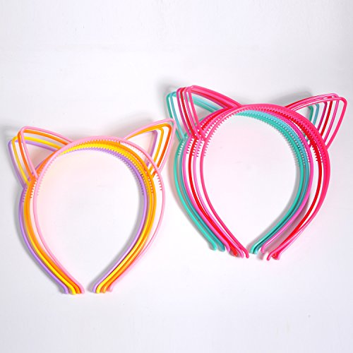 eBoot Cat Ear Headbands Plastic Cat Hairband Cat Bow Hairbands Makeup Party Headwear for Women Girls, Multicolor, 10 Pieces