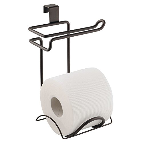 mDesign Toilet Paper Holder for Bathroom Storage, Over The Tank - Bronze