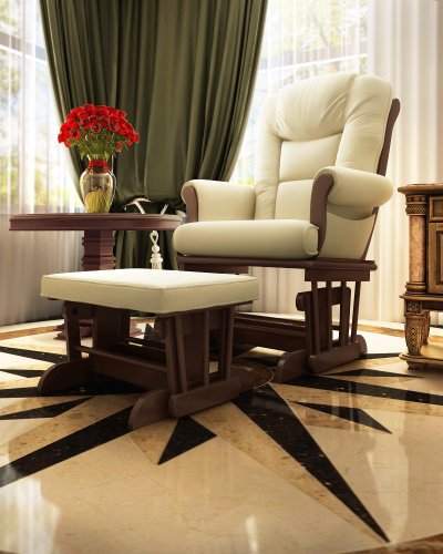Studio : Naomi Home Publisher : Naomi Home Binding : Kitchen Product Description Sit back and relax in the stylish Naomi Home deluxe sleigh glider ottoman set the sleigh glider is finely crafted with quality hardwoods and a steel encased ball bearing mechanism that ensures a smooth and quiet glide motion the oversize seating area is thickly padded with fiber fabric cushions that adorn the back and arms as well and you all be certain to find the perfect position since the glider rocking chair can be adjusted and locked in multiple positions perfect for the nursery the Naomi Home glider with matching ottoman set is designed to complement all things baby for a sweet gentle relaxing place to bond with your little one the extra tall back and arms provide plenty of support for the neck and back while making it comfortable for cradling and the cushions supply comfort for rocking sessions this glider provides maximum support and comfort for all your needs 0