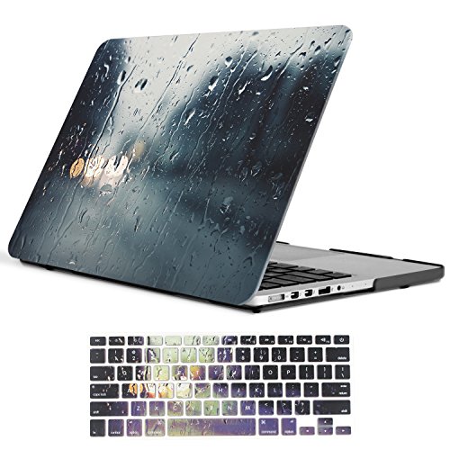 Macbook Pro 15 inch Case,iCasso Matte Soft Touch Plastic Hard Case Shell For Macbook Pro 15 Inch with Retina(No CD-ROM) Model A1398(NOT for 2016 Version)with keyboard cover-Raining Scene