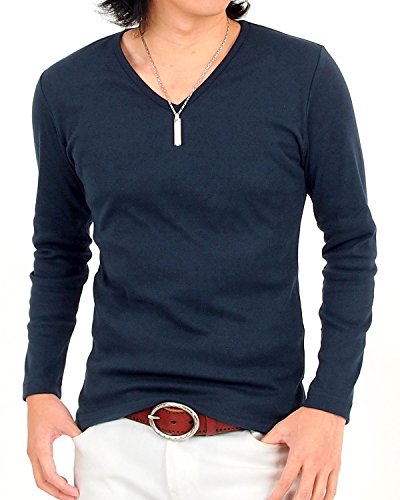 -. Title : (トップイズム) TopIsm フライス 無地 Vネック ロングTシャツ メンズ 長袖 Tシャツ