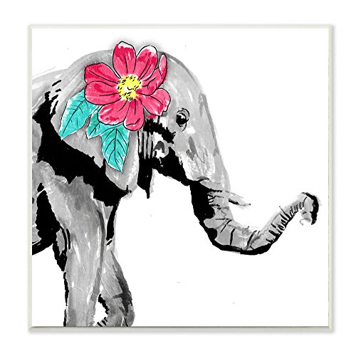 Stupell Home Décor Elephant with Floral Pop Wall Plaque Art, 12 x 0.5 x 12, Proudly Made in USA