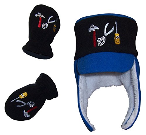N'Ice Caps Baby Boys Sherpa Lined Fleece Mechanics Hat And Mitten Set