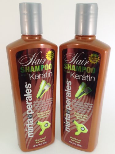 -. Binding : Misc. -. Brand : Mirta De Perales -. EAN : 0700112552854 -. Feature : BUY 2-PACK AND SAVE! COMPRA DE 2 PIEZAS Y AHORRA! / Prolonga y mejora el resultado de los tratamientos que se le hacen al cabello. / Ideal for all types of hair / Protects hair against heat damage. -. Label : Mirta De Perales -. Manufacturer : Mirta De Perales -. MPN : 2934180 -. PackageQuantity : 1 -. PartNumber : 2934180 -. ProductGroup : Beauty -. ProductTypeName : BEAUTY -. Publisher : Mirta De Perales -. Studio : Mirta De Perales -. Title : Mirta De Perales Hair Shampoo with Keratin 16 Oz. 2-PACK -. UPC : 700112552854