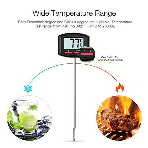 - Use-friendly Design: Swiveling head rotates for easy reading; Large LCD digital thermometer for clearer readouts; widely temp range with -49°F to 392°F (-45°C to 200°C) for widely using; Battery are included.