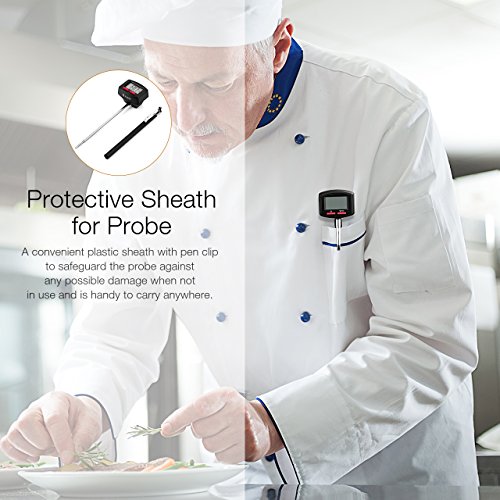 - Protective sheath: candy thermometer with pen clip is easier to storage and carry, and also make 4.8” probe thermometer more clean and hygienic.