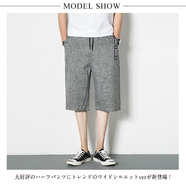 | m-6XLサイズ展開で選べるのも嬉しい。大好評のハーフパンツにトレンドのワイドシルエットverが新登場!ショーツの穿きやすさはそのままに、シルエットで遊び心をプラスした今旬デザインから目が離せない!ウエストはドローコードで簡単に調節できるイージーパンツ仕様で、自分に合ったサイズ感で着用可能。ハリのある上質な素材はシンプルで使い勝手良く、どんなコーディネートにもフィットします。 | |