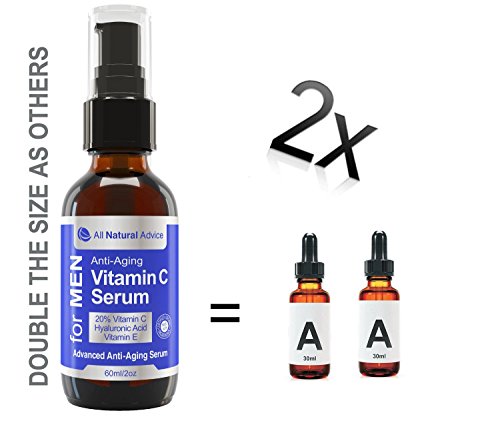 - Title : 20% Vitamin C Serum FOR MEN Double the size at 2oz MADE IN CANADA Organic + Hyaluronic Acid + Vitamin E Moisturizer + Collagen Boost, Anti Aging, Removes Sun Spots & Wrinkles Great for Sensitive Skin