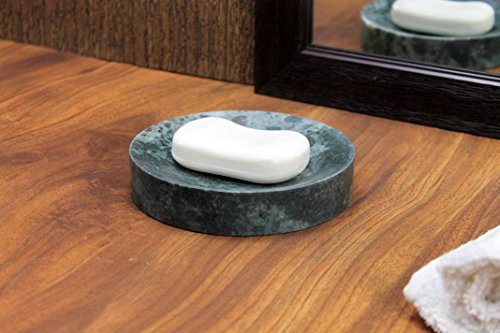 -. Feature : KLEO brings Hand-crafted luxury to redefine your home decor. Add sheen and class to your bathroom with this artistic piece made out of Natural Stone in GREEN color. / With a natural feel of stone, it is a far better option than Ceramic, Resin made Soap dishes. Our products are easy to maintain and very durable. / Colour: GREEN Dimensions - Size : 13 (Dia) x 2.6 Cm (Medium). Suitable for all size of soaps. Pls Refer photo with a Soap. Weight: 500gms / A beautiful piece of accessory for your bath. It also makes a unique gift choice for birthdays, anniversary, business etc. Four piece bath set accessories of similar design are also available with us. / This product is 100% handmade by skilled Artisans. We support Artisans and want to conserve the arts & crafts of old times.