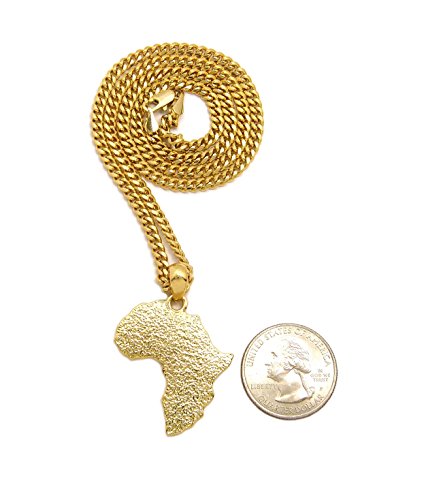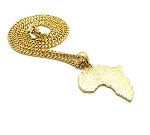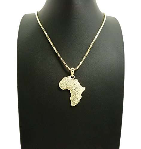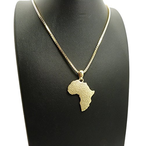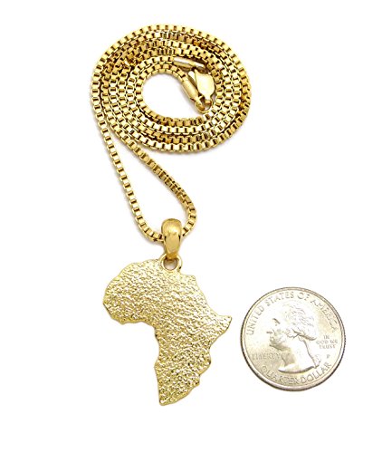 -. Feature : Unisex Rugged Textured Africa Map Pendant Necklace - Available in Various Tones and Chains. / Pendant Size: 1.15" x 1.65" Inches. / Chain Size: Available in 18", 20", 22", 24" Inches Long - 2mm Box Chain, 3mm Cuban Chain, 2mm Rope Chain. / Fashion Costume Jewelry - Imitation Gold, Rhodium Tone Plated. / Makes a great gift for special occasions.